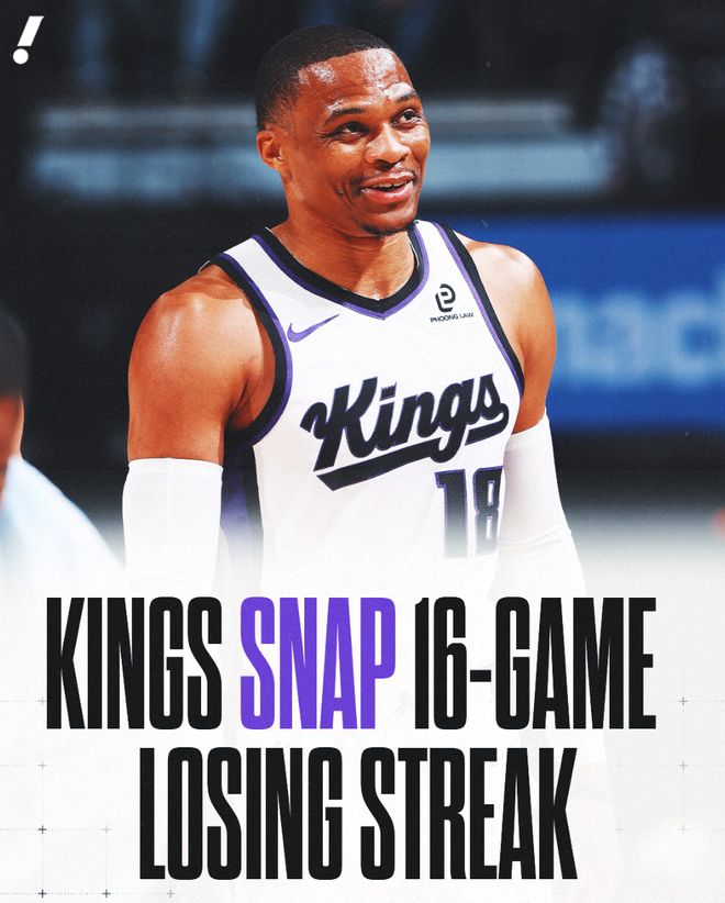 • 国王结束16连败!威少25+7立功,湖人弃将8中0+7失误,德罗赞爆发