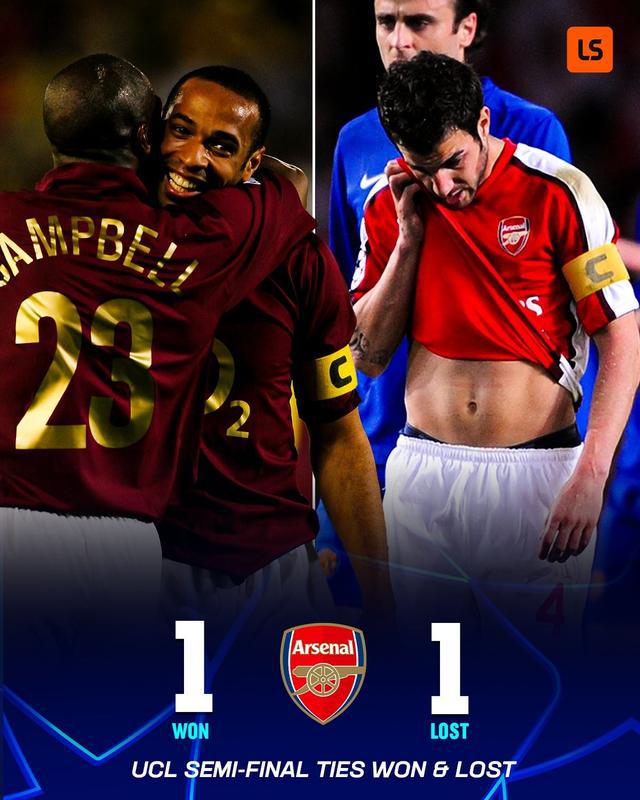 欧冠四强半决赛成绩单:巴萨参赛最多5胜7负,阿森纳1胜1负